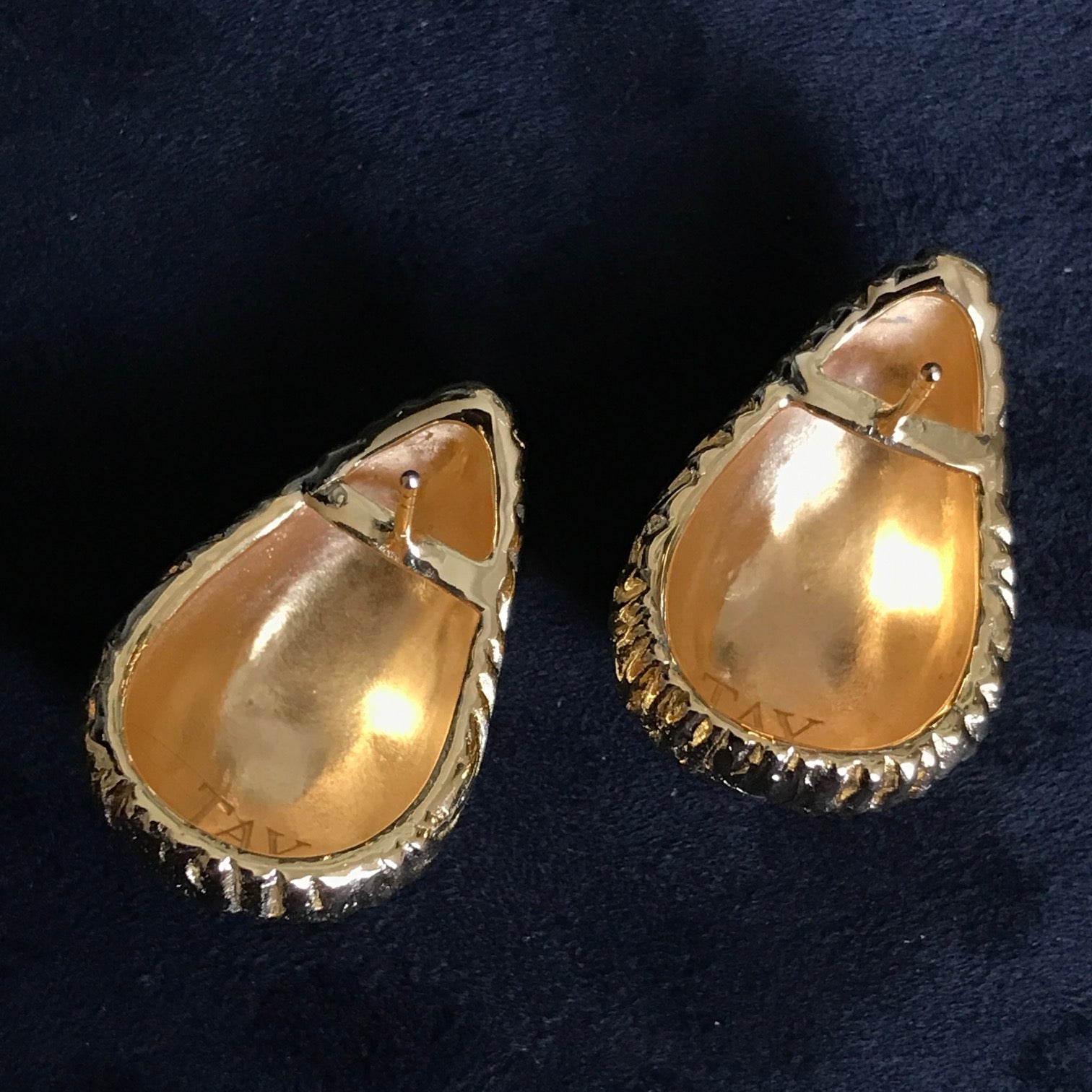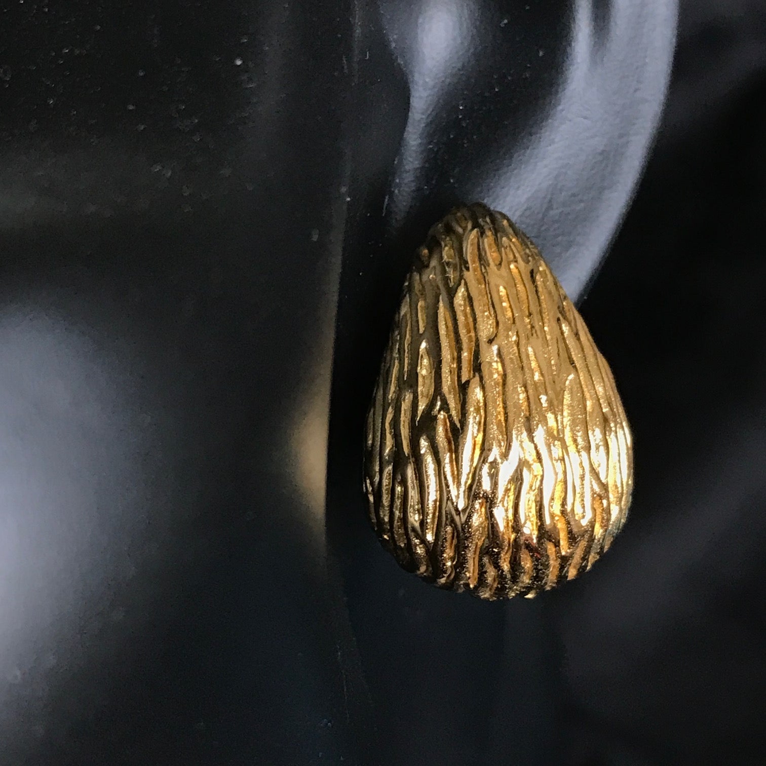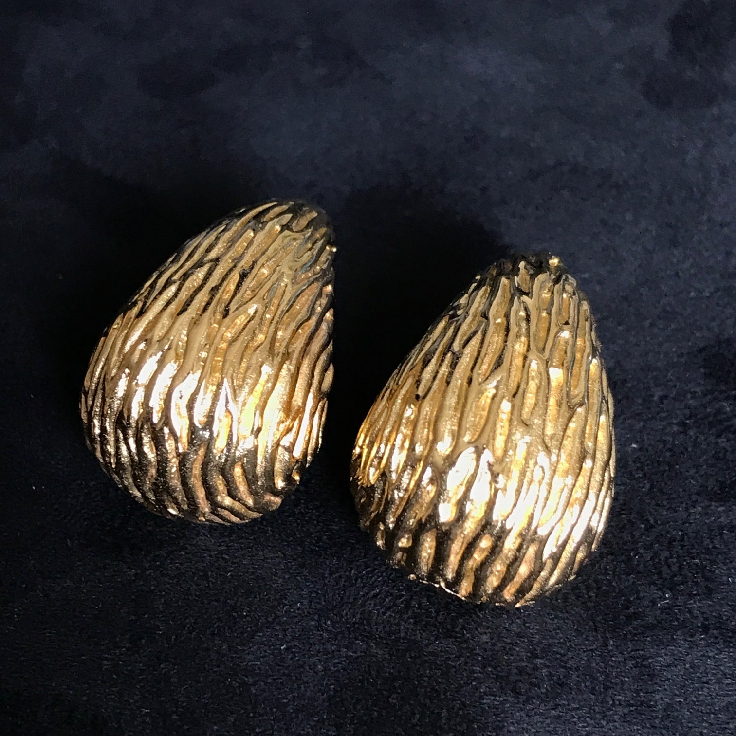 Formed as a bombe pearshape drop, then applied with a deep 'organic' texture, the eardrops for part of a wider 'Talia' collection including another earring design, as well as a gemset pendant and ring, all of which can be found on our website.